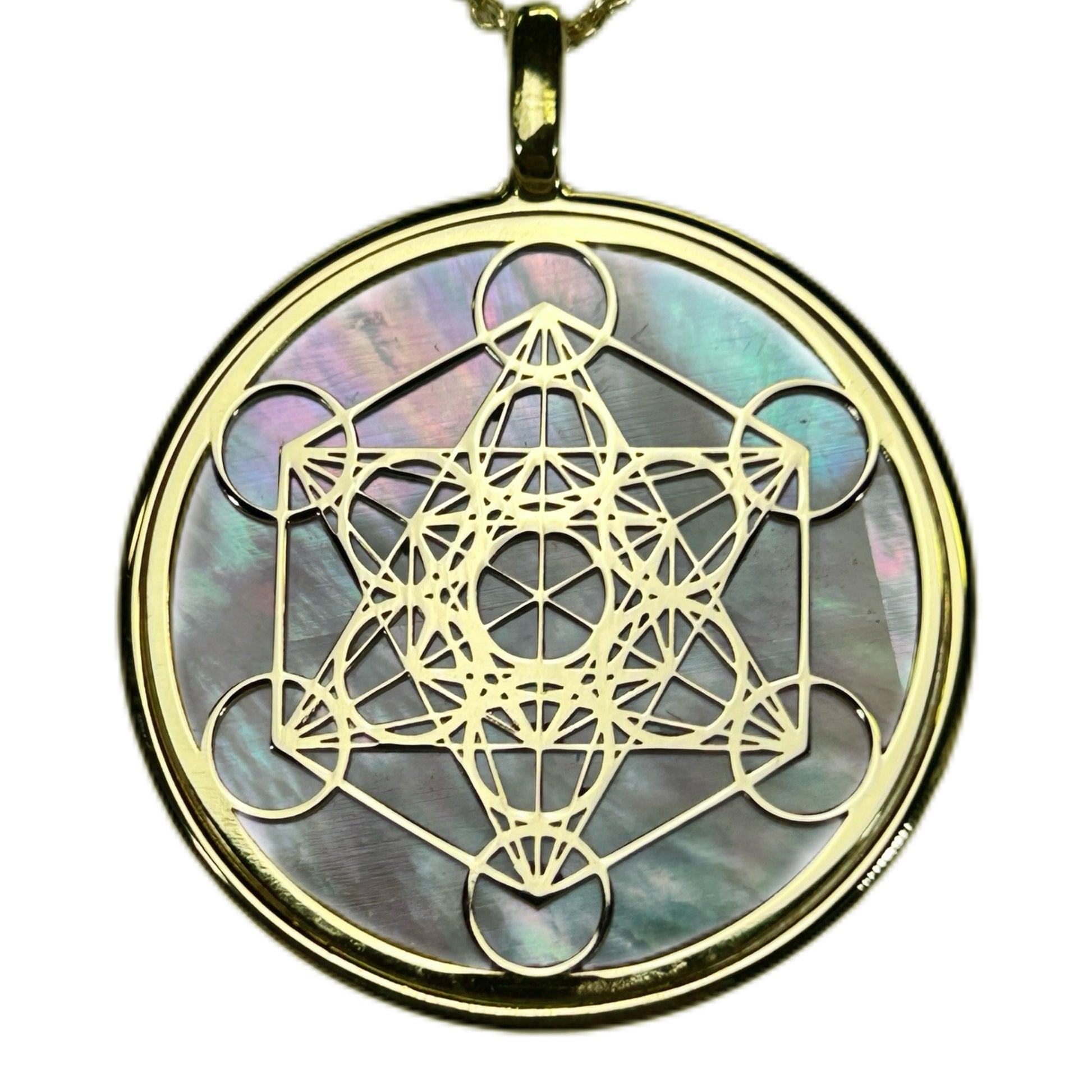 METATRON, CIONDOLO CON SFONDO IN MADREPERLA NATURALE.