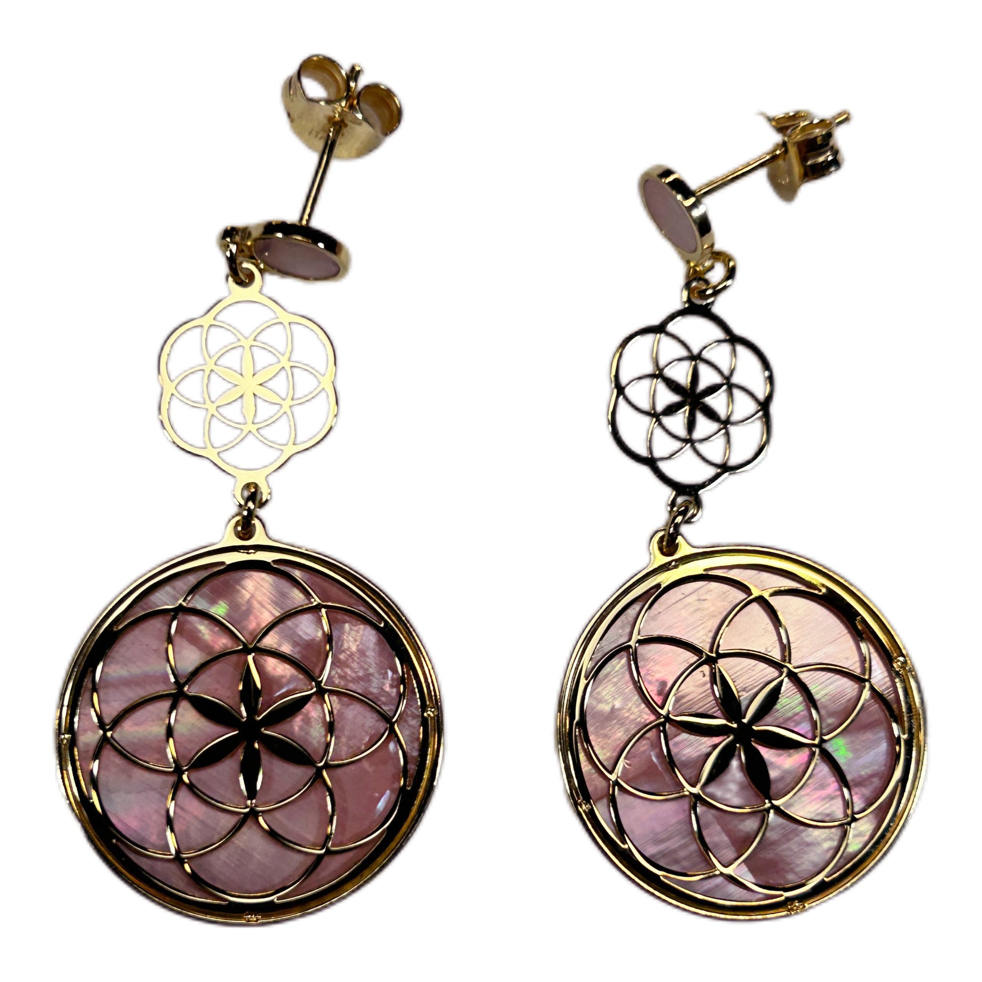 SEME DELLA VITA, ORECCHINI CON SFONDO IN MADREPERLA NATURALE.