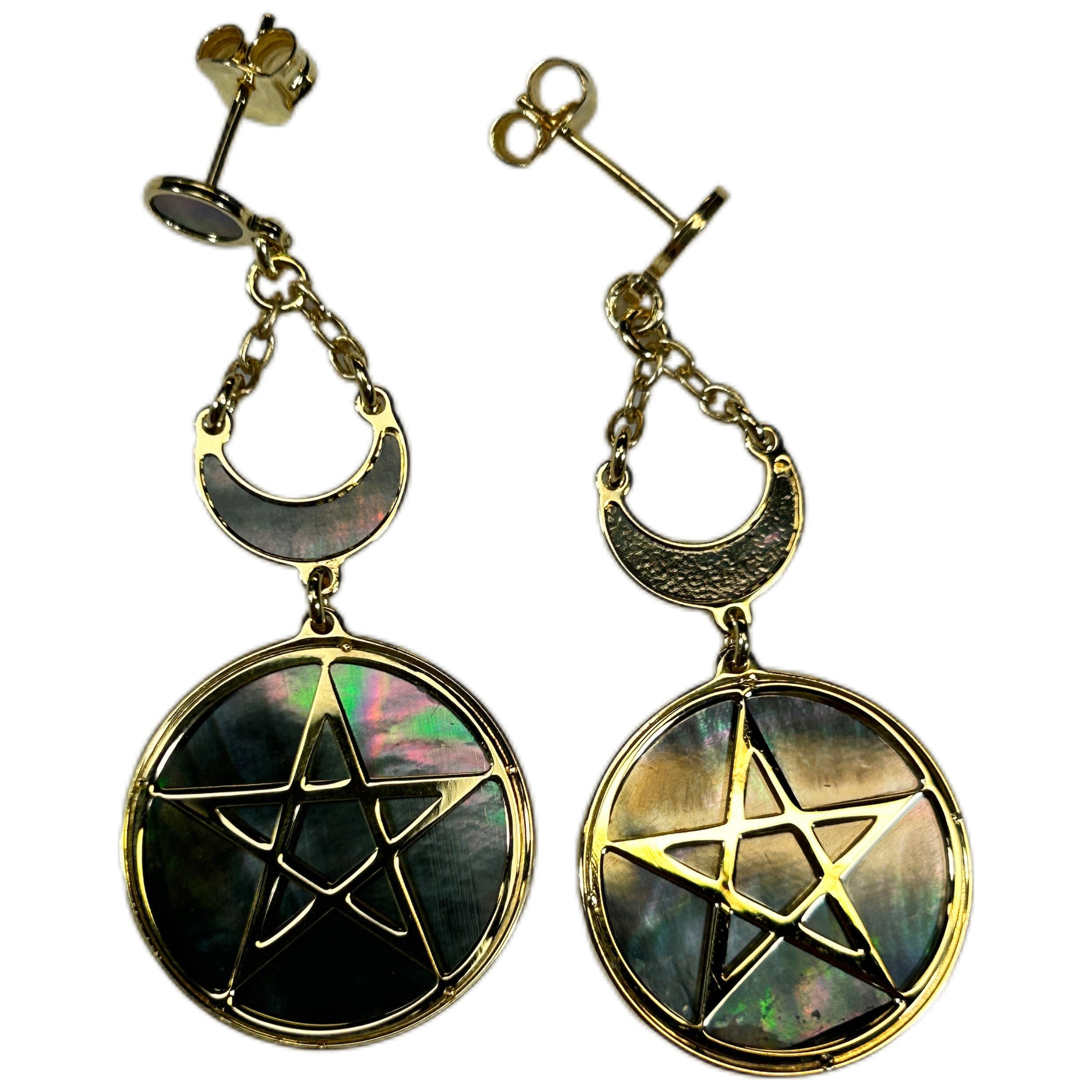 WICCA, ORECCHINI CON SFONDO IN MADREPERLA NATURALE E PENTACOLO AL CENTRO.